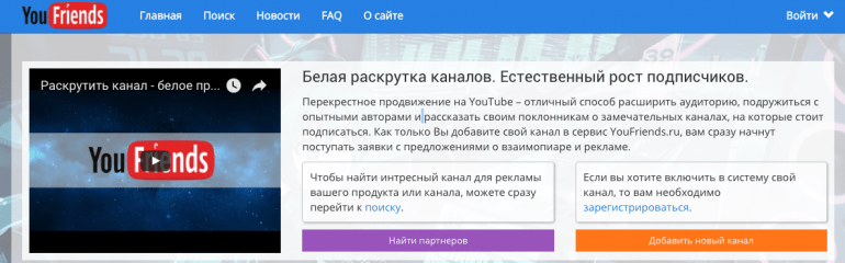 Это один из самых популярных сервисов, который создан с целью обмена подписчиками, поиска рекламодателей и бесплатной раскрутки каналов на YouTube.