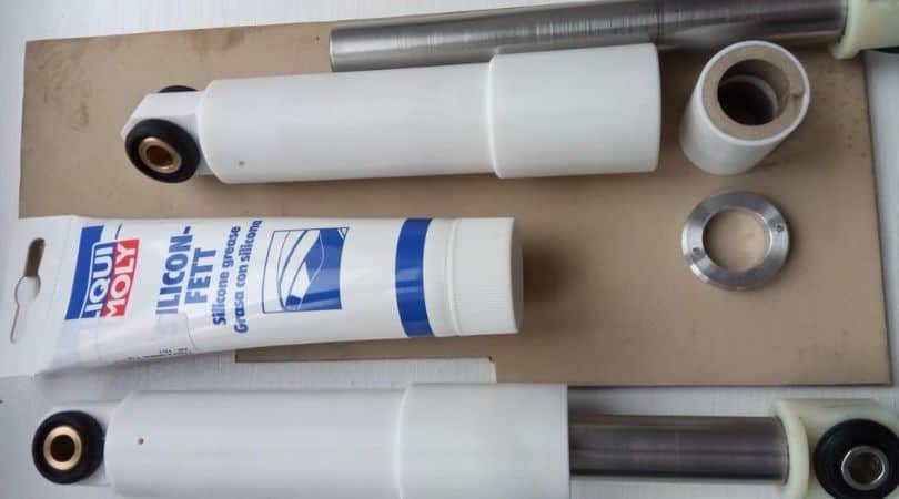 При этом должно наблюдаться заметное сопротивление нажатию от руки. Если шток входит свободно, а в некоторых случаях просто выпадает из корпуса, амортизатор требует замены. В некоторых демпферах во внутреннюю полость корпуса помещается специальная уплотнительная смазка.