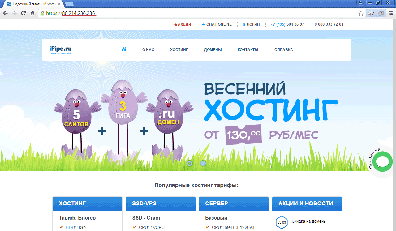 А если в браузере ввести 88.214.236.236 – вы попадете на наш хостинг.