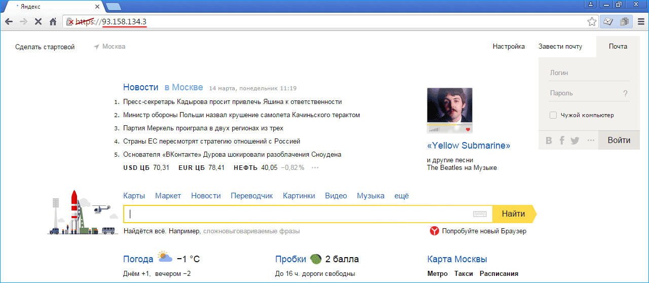 Вот так это может выглядеть. Например, если ввести 93.158.134.3 – откроется поиск Яндекса: