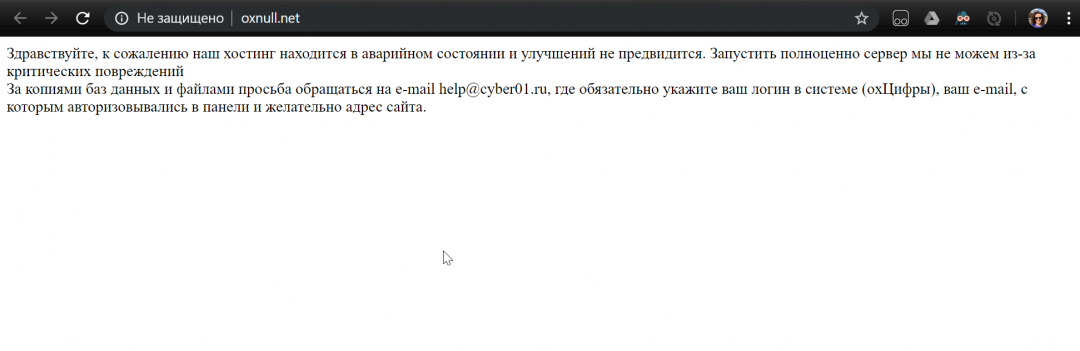 Иногда бывает так, что бесплатные хостинги закрываются и перестают работать. Именно это случилось с Охнул.нет (Окснул?), который сейчас показывает только сообщение с контактами админа.