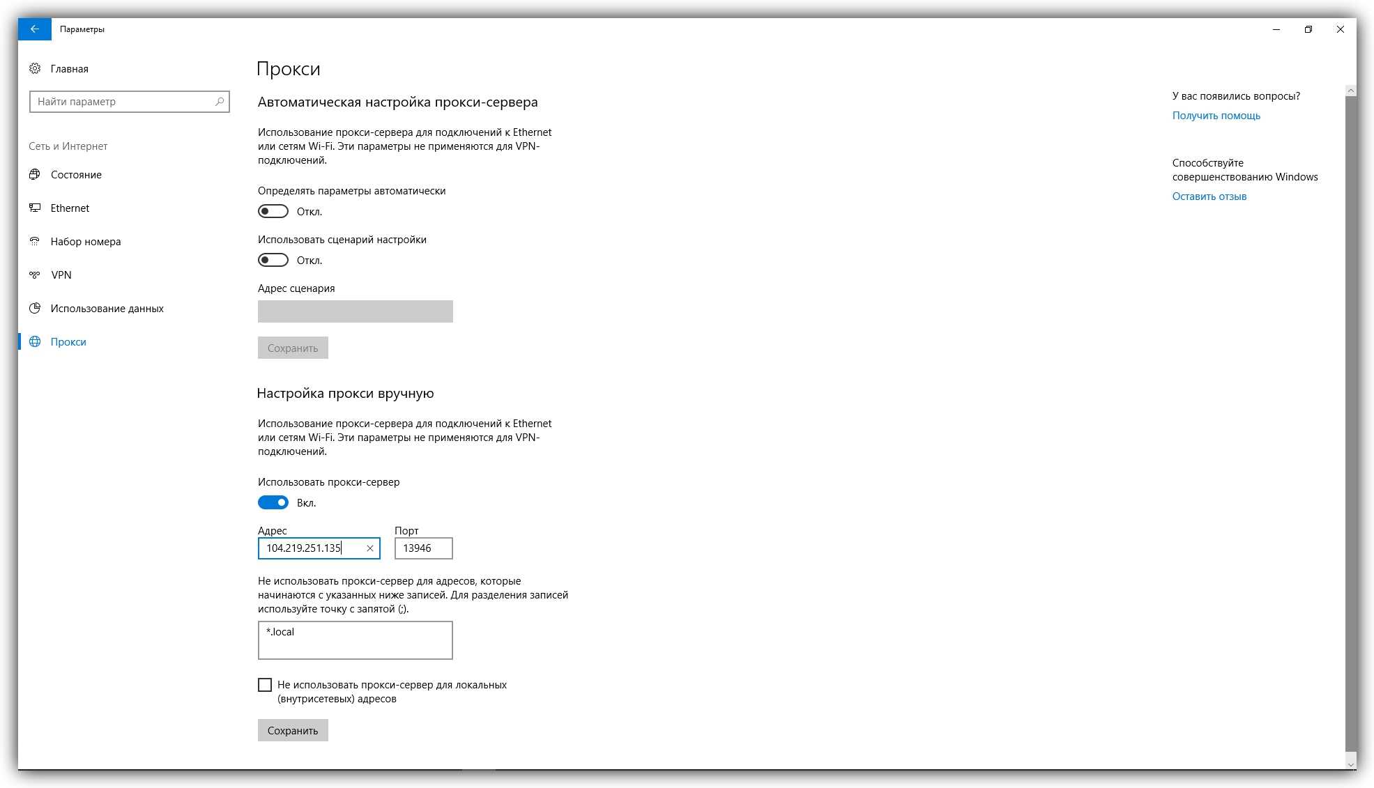 Но чтобы использовать прокси любого другого типа, его нужно сначала привязать к устройству. Для этого достаточно узнать IP-адрес и порт прокси-сервера, а затем внести эти данные в настройки операционной системы.