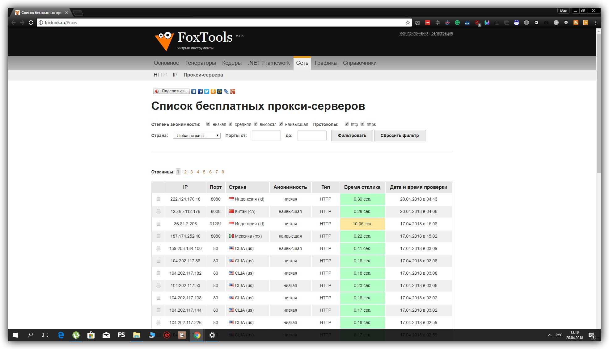 ВСЕ ПРОКСИ-СЕРВЕРА, РАЗМЕЩЕННЫЕ НА ЭТОЙ СТРАНИЦЕ, ВЫ ИСПОЛЬЗУЕТЕ НА СВОЙ СТРАХ И РИСК. АВТОР FOXTOOLS, ХОСТИНГ-ПРОВАЙДЕР И ПРОЧИЕ ЛЮДИ НЕ НЕСУТ НИКАКОЙ ОТВЕТСТВЕННОСТИ ЗА ВОЗМОЖНУЮ УТРАТУ ДАННЫХ И ИНОЙ УЩЕРБ, ПРИЧИНЕННЫЙ В РЕЗУЛЬТАТЕ ИСПОЛЬЗОВАНИЯ ЭТОЙ ИНФОРМАЦИИ.