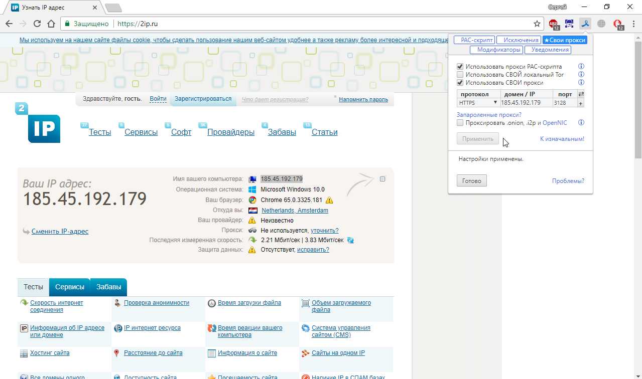 Проверьте IP-адрес компьютера, чтобы убедиться в том, что браузер подключается к сайтам через прокси. В других браузерах настройка выполняется аналогичным образом. Как настроить прокси на компьютерах, планшетах и телефонах с разными системами, Лайфхакер тоже рассказывал.