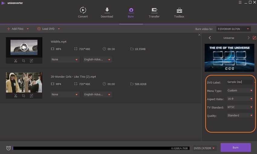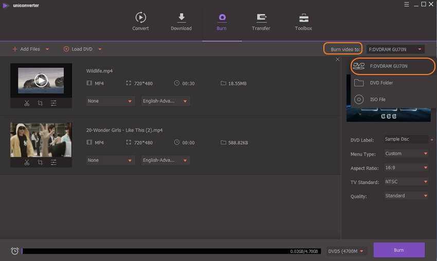 Wondershare UniConverter-Лучшая горелка дисков Blu-ray для Windows / Mac