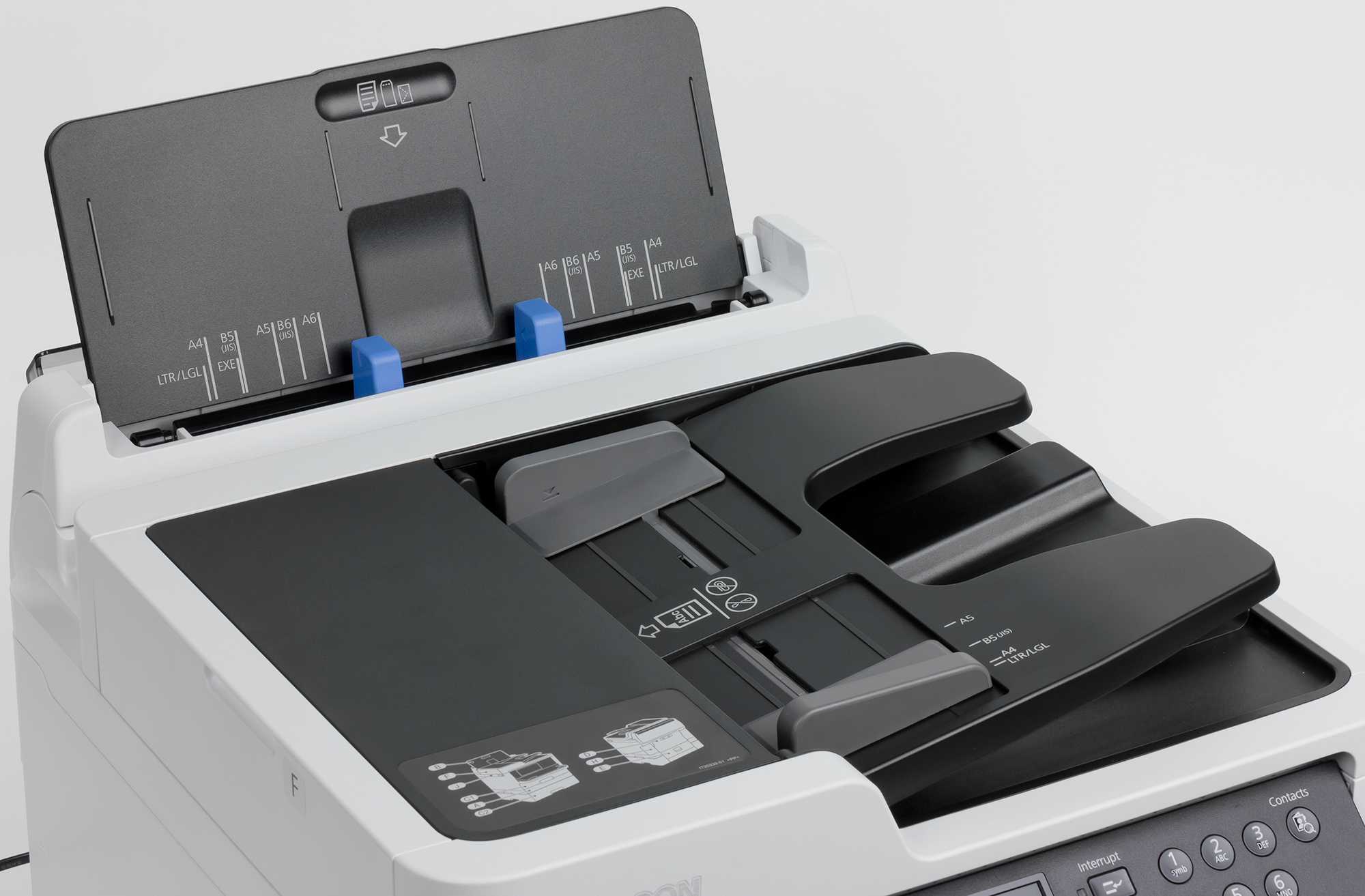 - Загрузите сложенный пополам лист бумаги в задний лоток.
