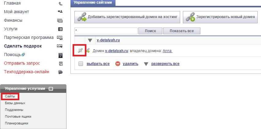 Посмотрите DNS-сервера, а затем привяжите домен к хостингу. Для этого перейдите на сайт, где зарегистрирован домен (у меня на сайте Mchost.ru). Перейдите в раздел «сайты» или «управление сайтами» и найдите кнопку «изменить DNS-сервера».