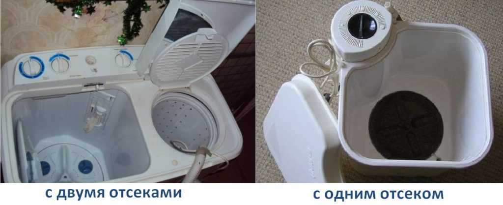 - С одним отсеком – простейшие стиральные машины, не имеющие отсека для центрифуги и не осуществляющие отжим.