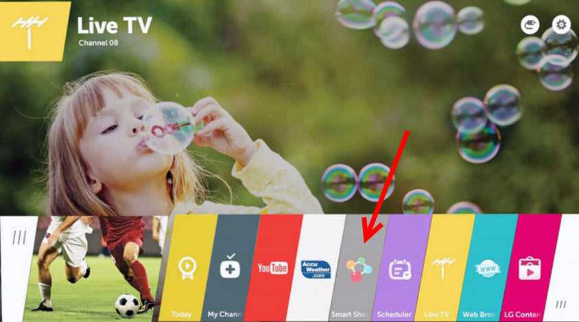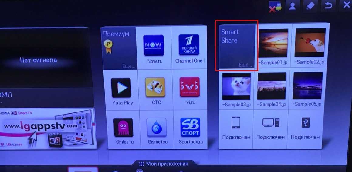 Для дальнейшего проигрывания файлов на LG потребуется открыть меню телевизора, перейти в папку «Smart Share», и выбрать нужные файлы из перечня.
