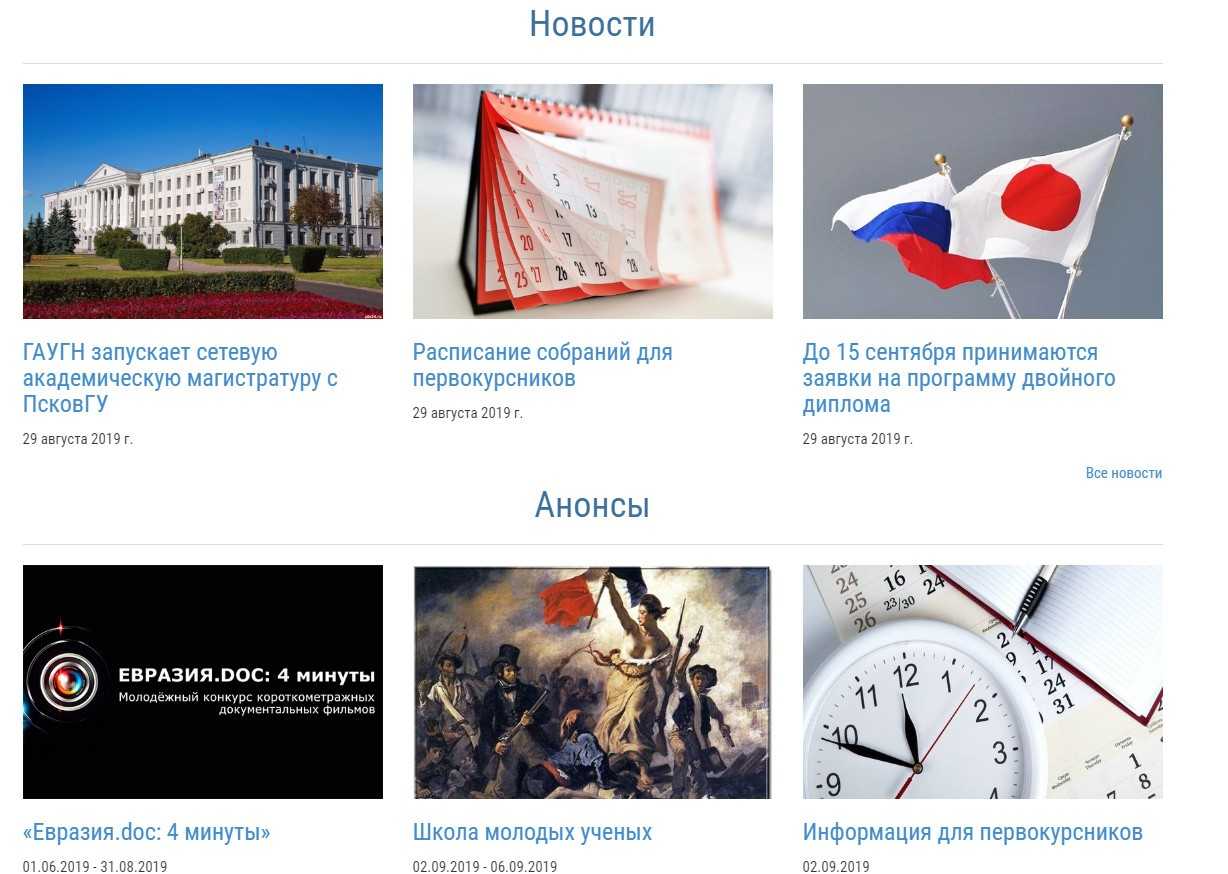 А вот другой пример – web-сайт университета гуманитарных наук. На видном месте размещен баннер, на котором можно увидеть сроки приемной кампании и подать онлайн-заявку.