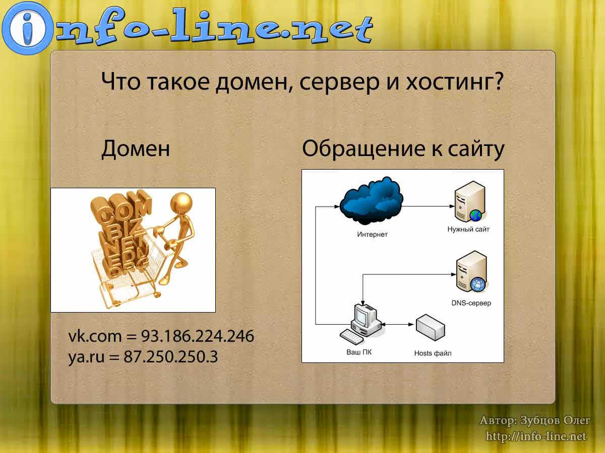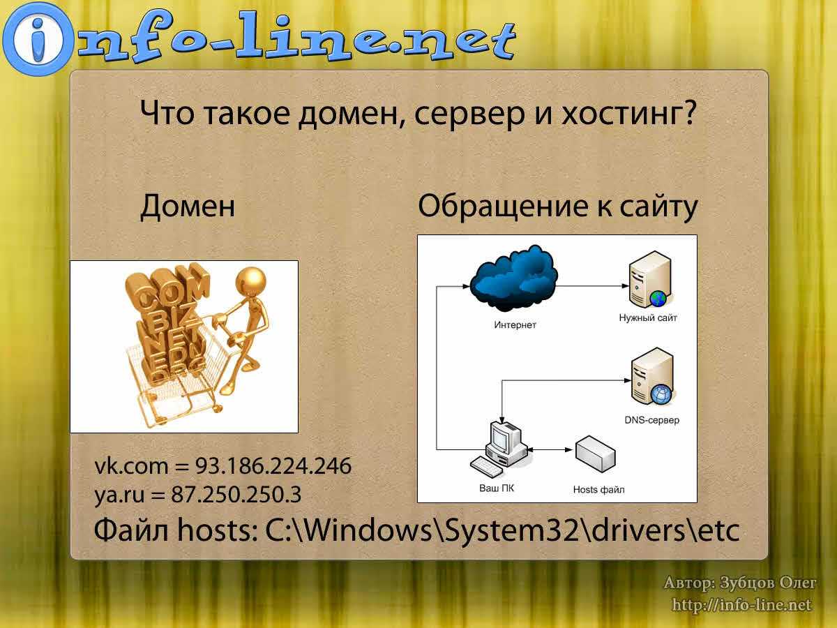 Домен (доменное имя) – это то, что вы чаще всего вводите в адресную строку вашего браузера – буквенное имя сайта, например, info-line.net, vk.com, yandex.ru, google.com и др.