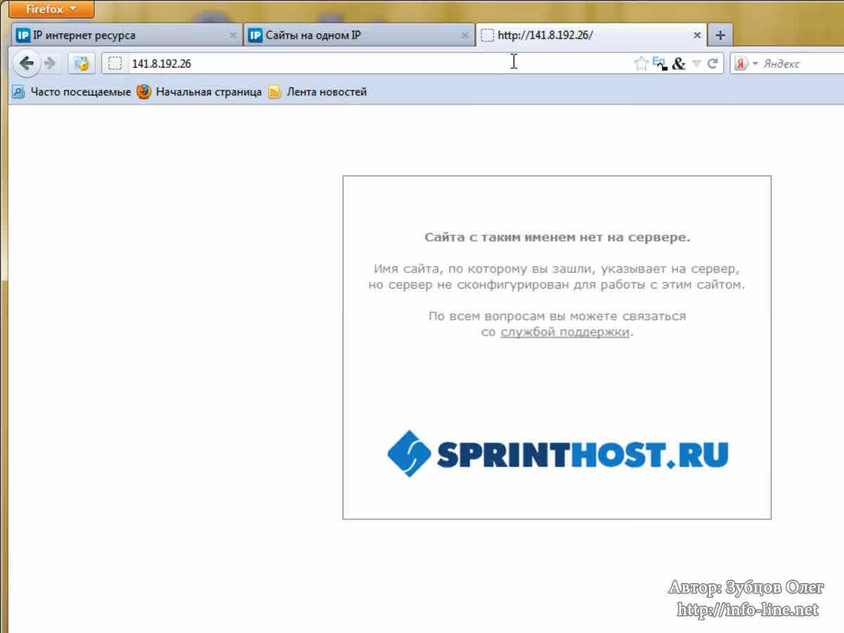 - Виртуальный хостинг. Это вид хостинга, при котором множество веб-сайтов расположены на одном веб-сервере. То есть, помимо ваших сайтов, на веб-сервере будут расположены и другие сайты. Мой сайт info-line.net на данный момент находится на виртуальном хостинге. Давайте это проверим. Я перейду в браузер и определю IP-адрес своего сайта. Получаю 141.8.192.26. Если я сейчас открою во вкладке IP-адрес, то, по идее, у меня должен открыться сайт info-line.net. Но этого не произойдет. Если мы введем этот IP-адрес в ту же строку, в которую вводили имя моего сайта, проверим, то увидим, что имя сайта отображается совсем другое. Отображаемое имя – действительное имя сайта. Дело в том, что большинство сайтов размещаются на одном сервере, и, естественно, они имеют один IP. Это можно проверить на том же сайте 2ip.ru, нажав вкладку «Сайты на одном IP». Введите IP-адрес или домен. Я введу info-line.net и нажму «Поиск». У меня появился огромный список сайтов, находящихся на этом IP. Причем, список этот не полный. Вы не заметите здесь сайта info-line.net. Также здесь нет других моих сайтов, которые тоже располагаются на данном хостинге. Самый главный плюс услуги виртуального хостинга – ее низкая стоимость.