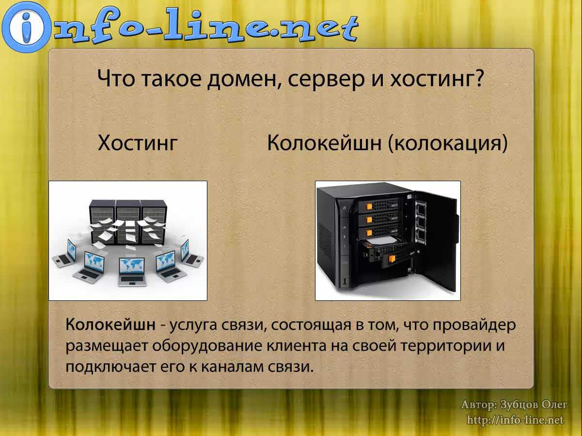 - Колокейшн (колокация). Колокейшн в переводе означает «помещать вместе». Это услуга связи, состоящая в том, что провайдер размещает оборудование клиента на своей территории и подключает его к каналам связи. Клиент покупает оборудование и размещает его у хостера, который уже подключает этот сервер к каналам связи с высокой пропускной способностью.