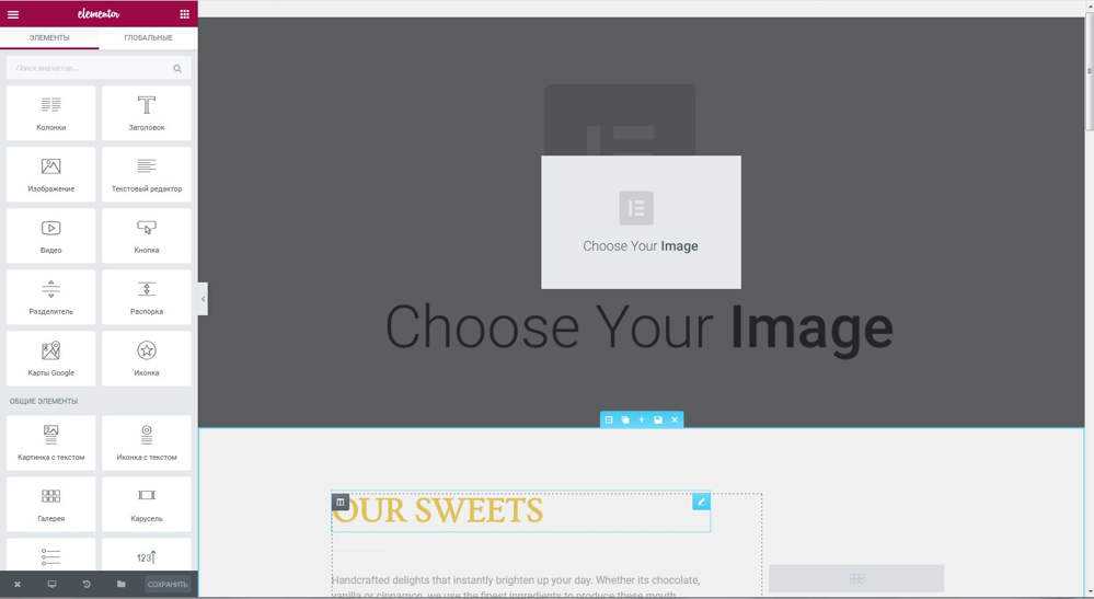 Теперь вы можете начать настраивать содержимое главной страницы. Это делается с помощью различных инструментов в вашем распоряжении. Чтобы отредактировать любой из элементов страницы, просто нажмите на них, и левая панель изменится на редактор для этой конкретной части.