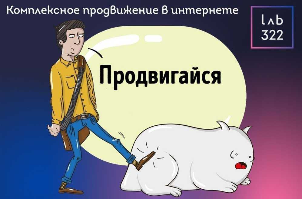 Композиционный центр здесь светлый по отношению к фону и за счёт этого сразу бросается в глаза. Слово «продвигайся» — наоборот, тёмное на светлом и тоже легко читается.