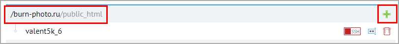 Откроется страница со всеми доступными прилинкованными доменами. Находим зеленый плюс напротив каталога, к которому желаем сделать удаленное соединение с FTP клиентом.