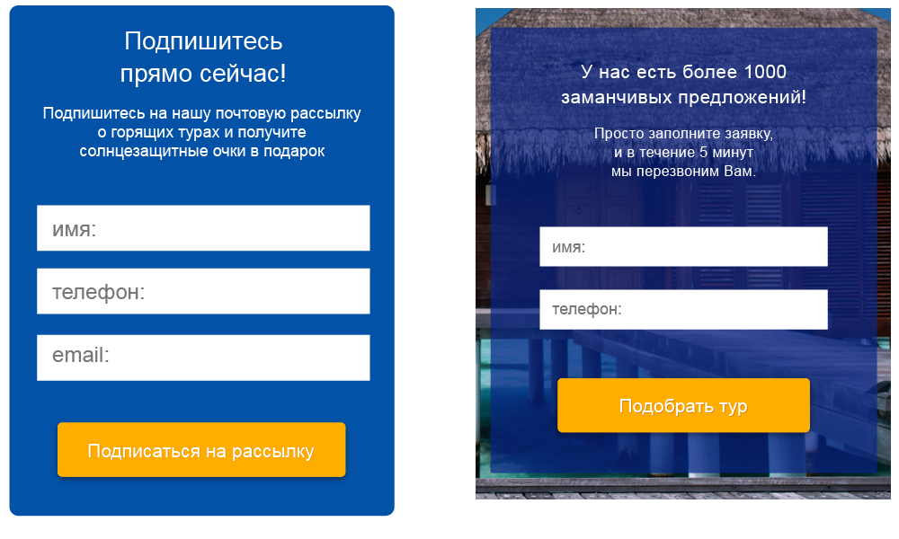 Получение заказа, номера телефона, подписки на рассылку и т. д.