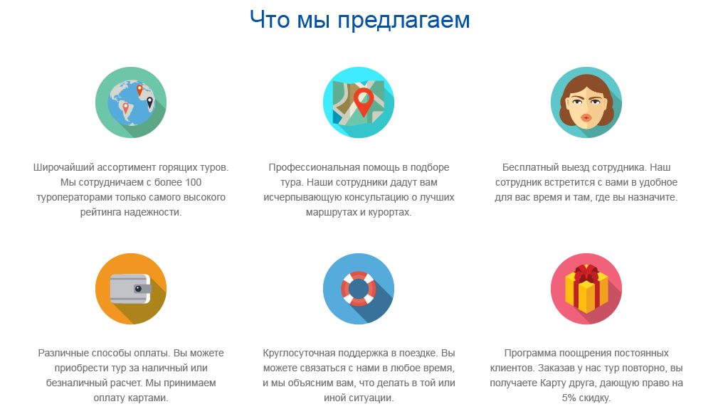 Как сделать так, чтобы покупатель купил товар как можно скорее? Конечно, нужно показать, как он выглядит. Вы предлагаете туристические путевки, опубликуйте фотографии курортов. Сделайте качественные изображения и разместите их в этом блоке. Если вы предлагаете какие-либо услуги, загрузите фотографии сотрудников компании, которые проконсультируют клиента.