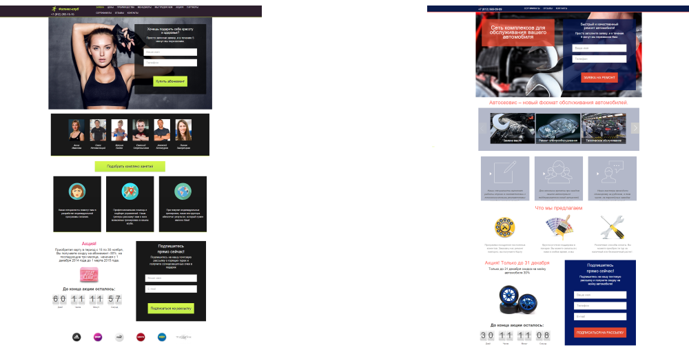 Примеры Landing Page сайтов (с отмеченными особенностями):