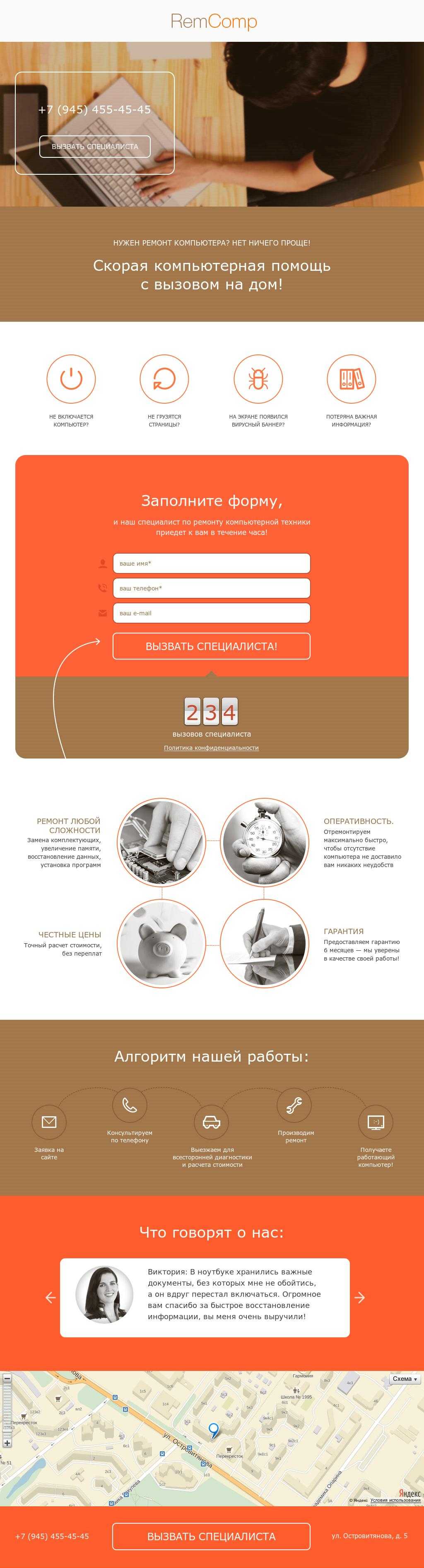 Как может выглядеть одностраничник (лендинг пейдж)?