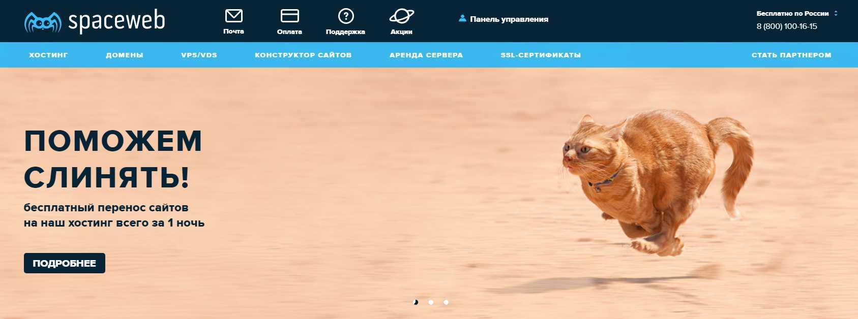Spaceweb — один из первооткрывателей услуг хостинга в России, которым и сегодня пользуется более 100 тысяч веб-мастеров. Для управления компания предоставляет собственную панель, которую легко освоить новичку, а большинство пользователей признало ее лучшим ращением из всех существующих. Столкнувшись со сложностями, пользователь может получить ответ в удобное время суток по телефону, онлайн или на электронную почту.