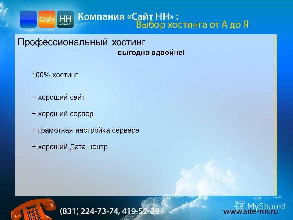 Профессиональный хостинг выгодно вдвойне! 100% хостинг + хороший сайт + хороший сервер + грамотная настройка сервера + хороший Дата центр