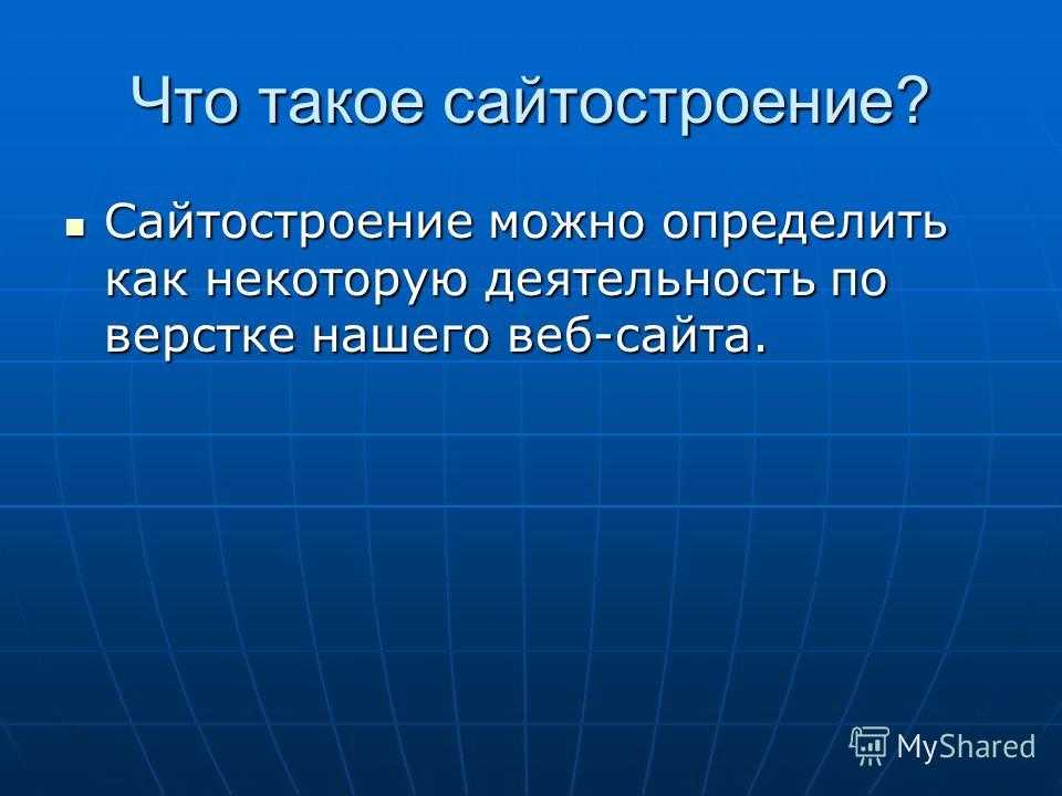 Что такое сайтостроение? Сайтостроение можно определить как некоторую деятельность по верстке нашего веб-сайта. Сайтостроение можно определить как некоторую деятельность по верстке нашего веб-сайта.