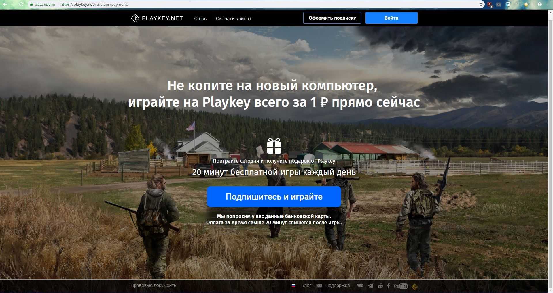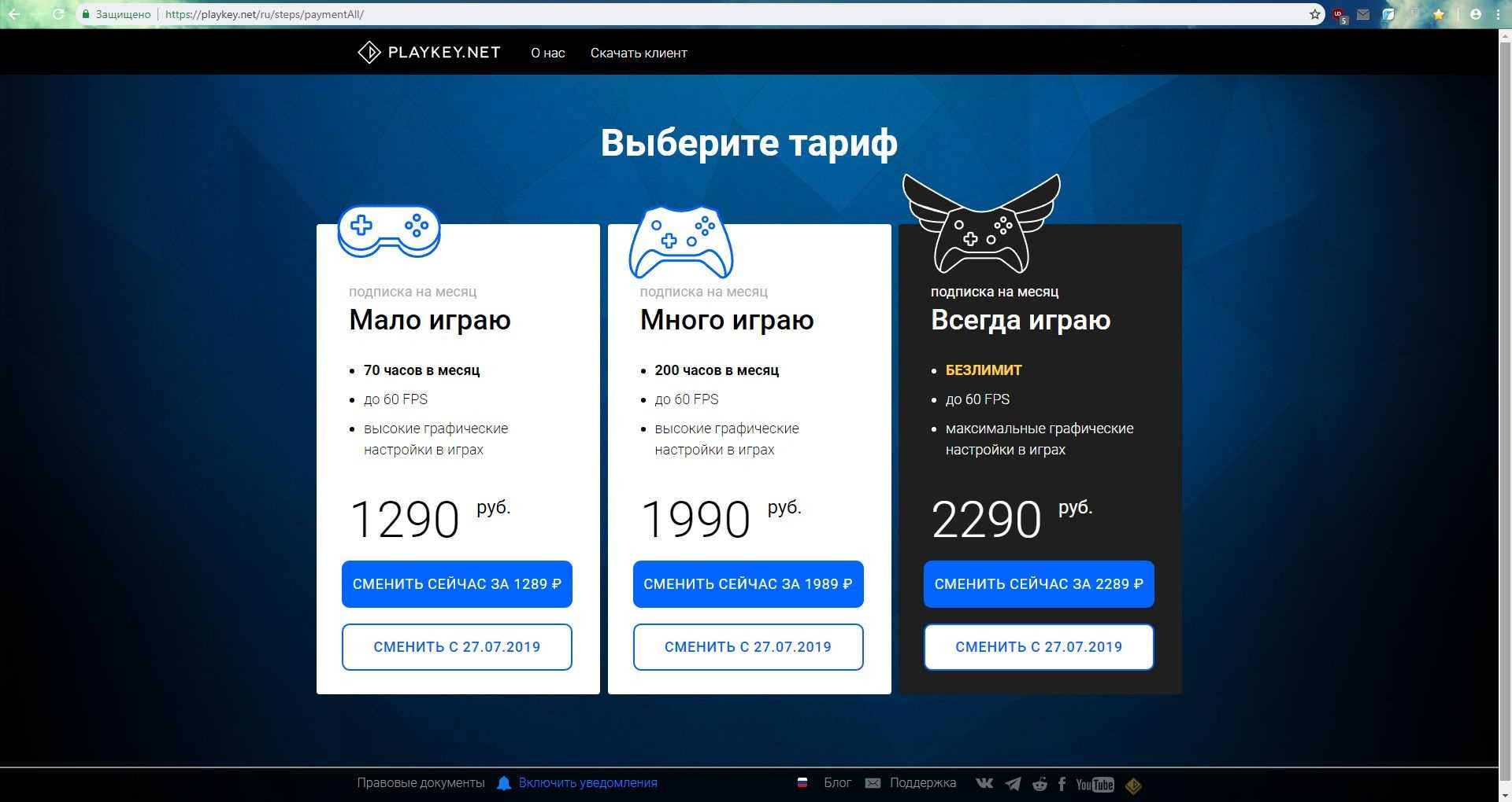 В настоящий момент Playkey предлагает тариф поминутной подписки, в рамках которого можно играть за 1 рубль в минуту.
