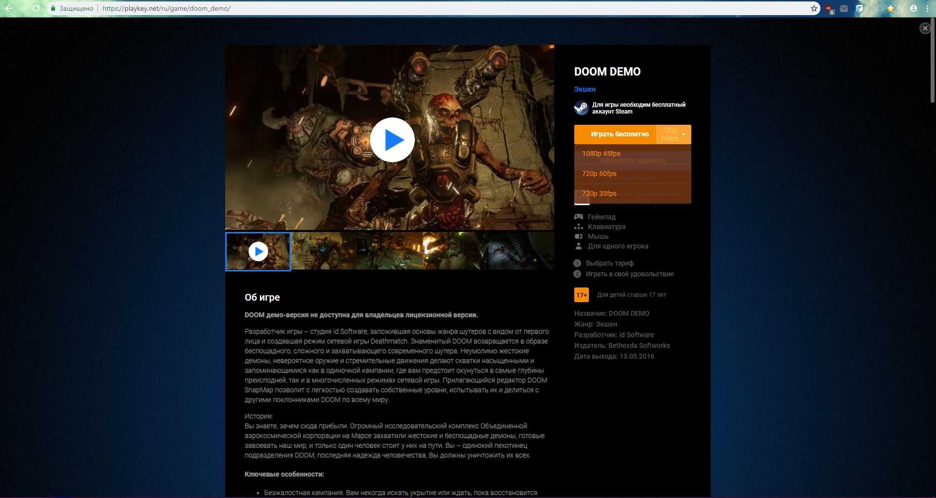 Итак, чтобы запустить игру, достаточно всего лишь скачать приложение Playkey, выбрать качество изображения (разрешение и частоту кадров) и нажать кнопку «Играть». После этого сразу мы сразу же попадаем в главное меню – не нужно ждать скачивания и установки игры, что очень удобно.