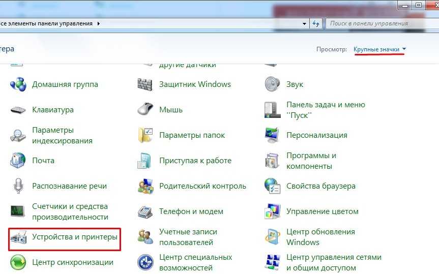 - Переходим в «Устройства и принтеры» – если вы не можете найти данный пункт, то поставьте режим просмотра как «Крупные значки».