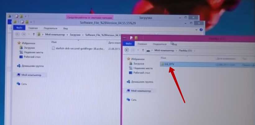 Во время обновления не допускается выключать телевизор или вытаскивать флэш-накопитель. Это грозит неправильной установкой ПО и последующей поломкой техники.