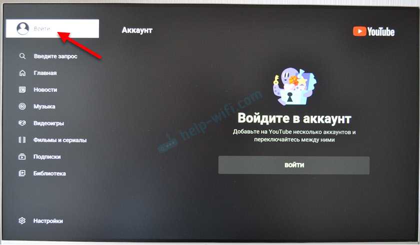 Запустите приложение YouTube на телевизоре. Если у вас возникнут проблемы с этим, то смотрите статью как смотреть Ютуб на телевизоре.