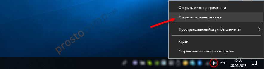 Чтобы открыть настройки, нажмите на иконку правой кнопкой мыши и выберите «Открыть параметры звука».