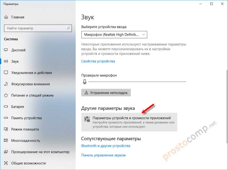 Откроется окно с основными настройками звука в Windows 10. Там можно изменить устройства ввода и вывода, отрегулировать громкость, проверить микрофон и открыть «Другие параметры звука».