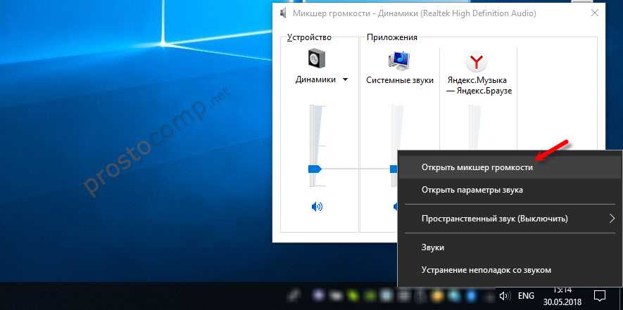 В правом нижнем углу экрана найдите часы, слева от них будет значок «Динамик», нажмите на него правой кнопкой мыши.