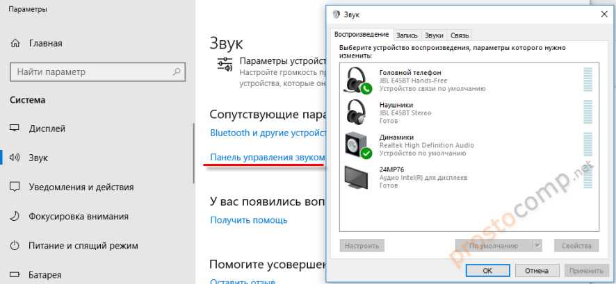 А чтобы открыть старое окно управления устройствами воспроизведения, нужно в параметрах открыть «Панель управления звуком».