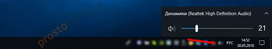 Начнем с регулировки общей громкости. Это, конечно, совсем для новичков – но пускай будет. В трее нажимаем на иконку звука и изменяем громкость.
