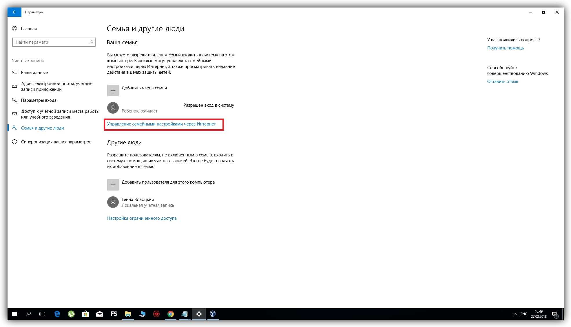 Затем вернитесь в меню «Семья и другие люди» и кликните «Управление семейными настройками через интернет».
