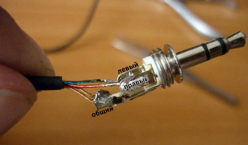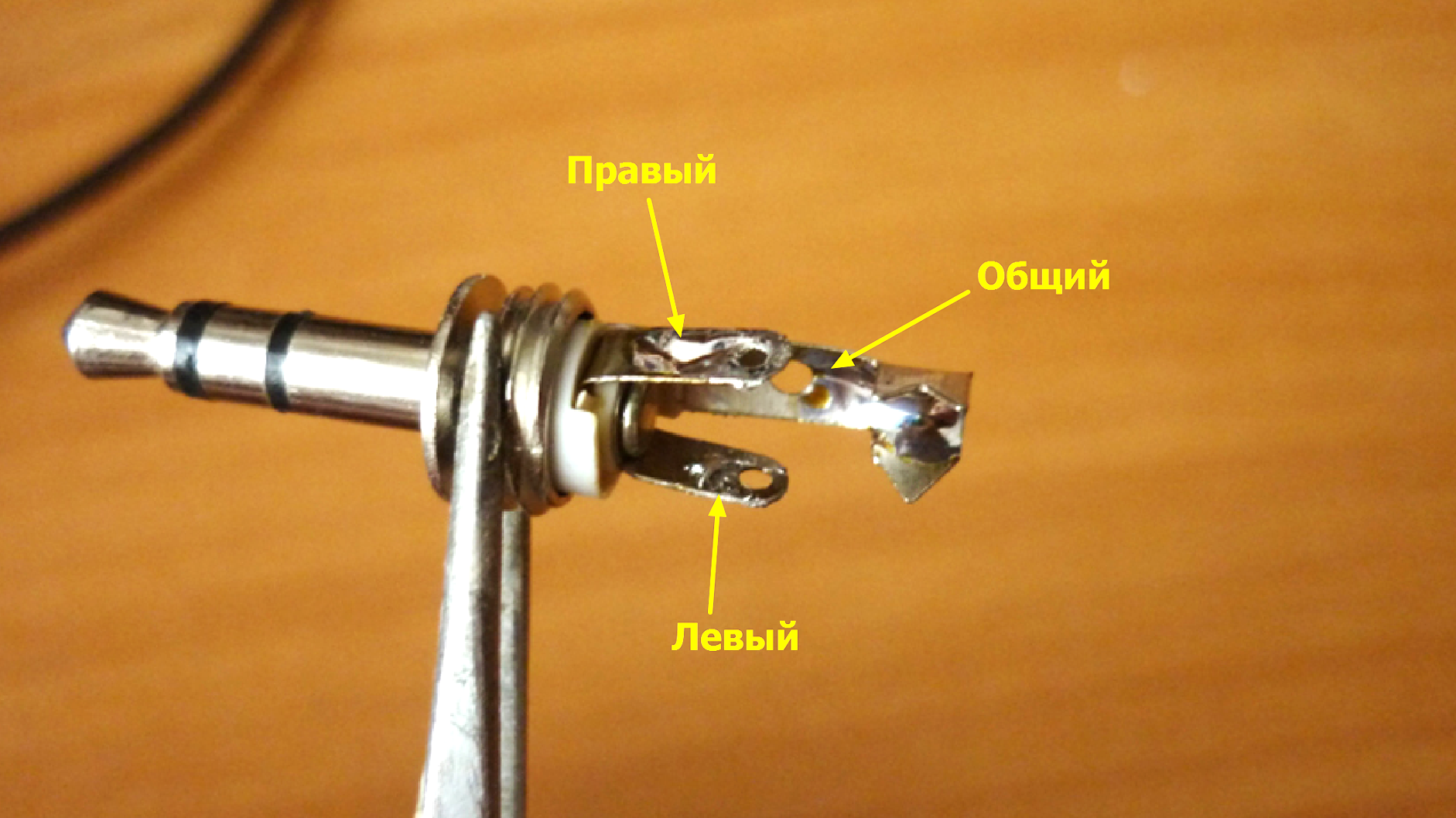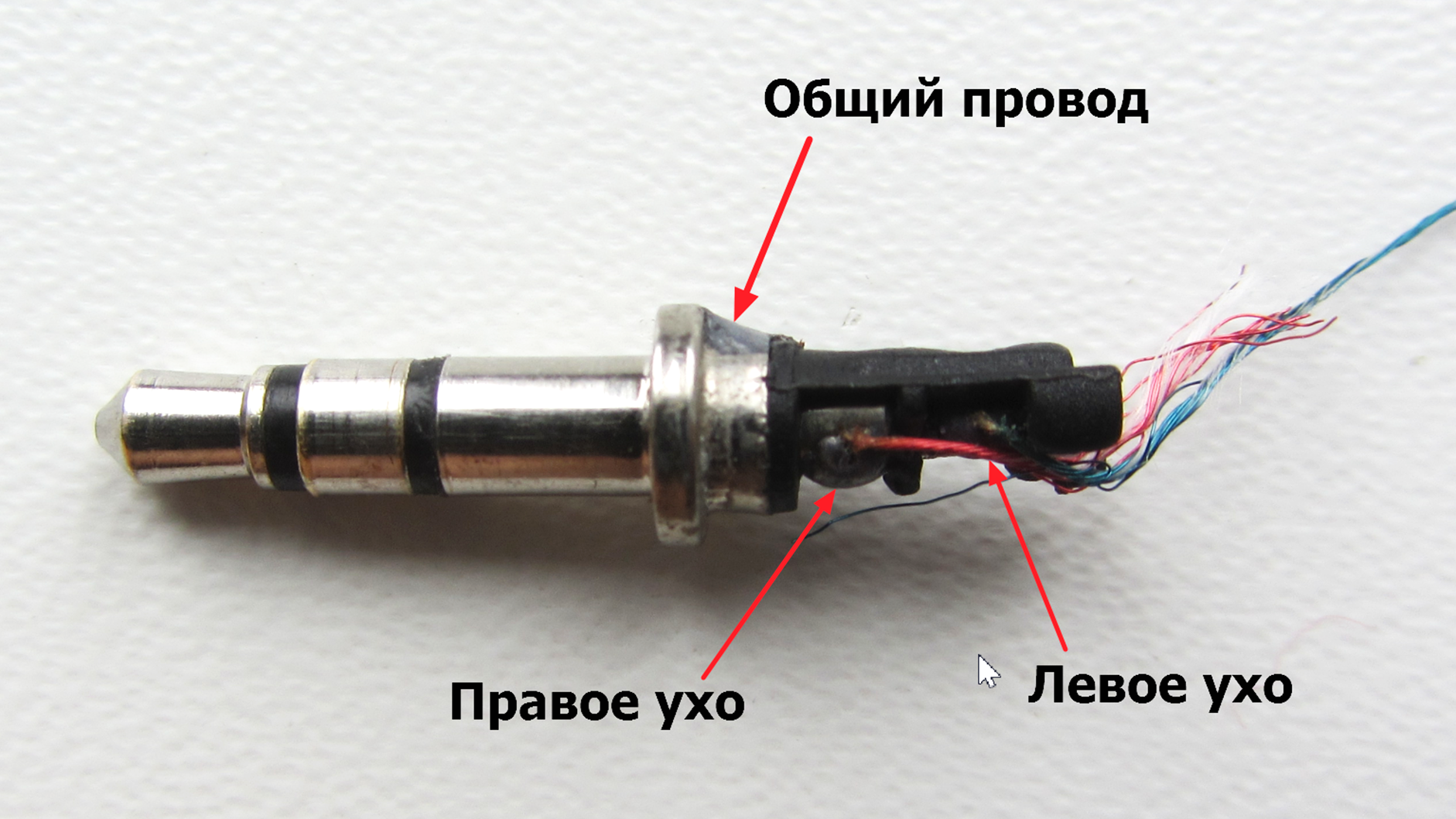 Экран правого и левого канала скручиваем между собой; как уже упоминалось выше, это могут быть и три провода, два из которых каналы, а один — общий экран, в этом случае просто снимаем с них изолирующий лак; разбираем новый разъем, не забываем продеть через его основание провода стерео наушников, как это показано на фото иначе придется все переделывать ; Важный момент: провод должен быть продет в основание разъема приступаем к припаиванию проводов к разъему. В противном случае можно вызвонить провода с помощью мультиметра омметра, электронного тестера или же определить методом подбора самый простой вариант — вставить штекер в плеер и по очереди прикладывать к нему провода, пока будет найдена верная комбинация