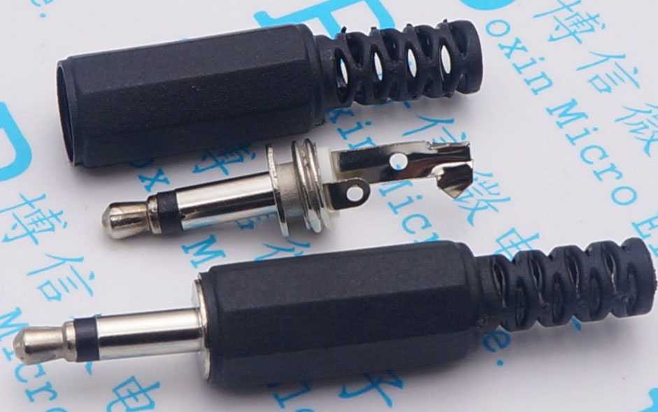 При замене входа нанаушниках нужно выбирать разъём такой конструкции, чтобы тыловое отверстие корпуса соответствовало диаметру соединительного кабеля. Некоторые модели имеют с задней стороны корпуса пружинку.