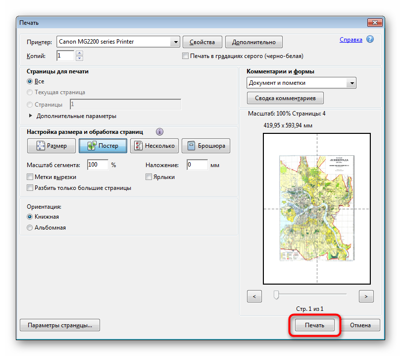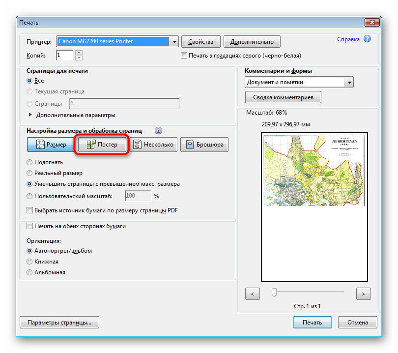 Переместитесь к разделу «Постер», чтобы приступить к установке параметров распечатки.