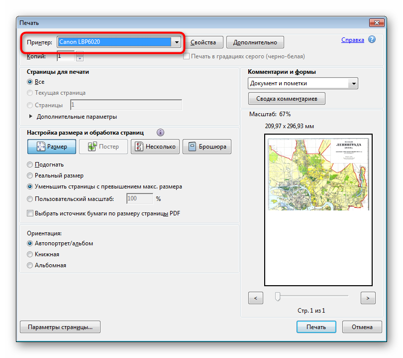 Этот вариант подойдет тем пользователям, кто предпочитает отправлять документы через фирменное приложение принтера и, соответственно, оно установлено на самом компьютере. Уточним, что далеко не все устройства поддерживают подобные решения, устанавливающиеся вместе с основным драйвером.