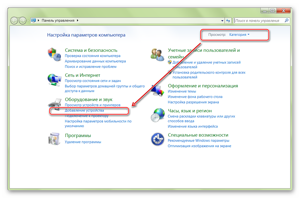 Отсортируйте значки по категории и выберите «Просмотр устройств и принтеров».