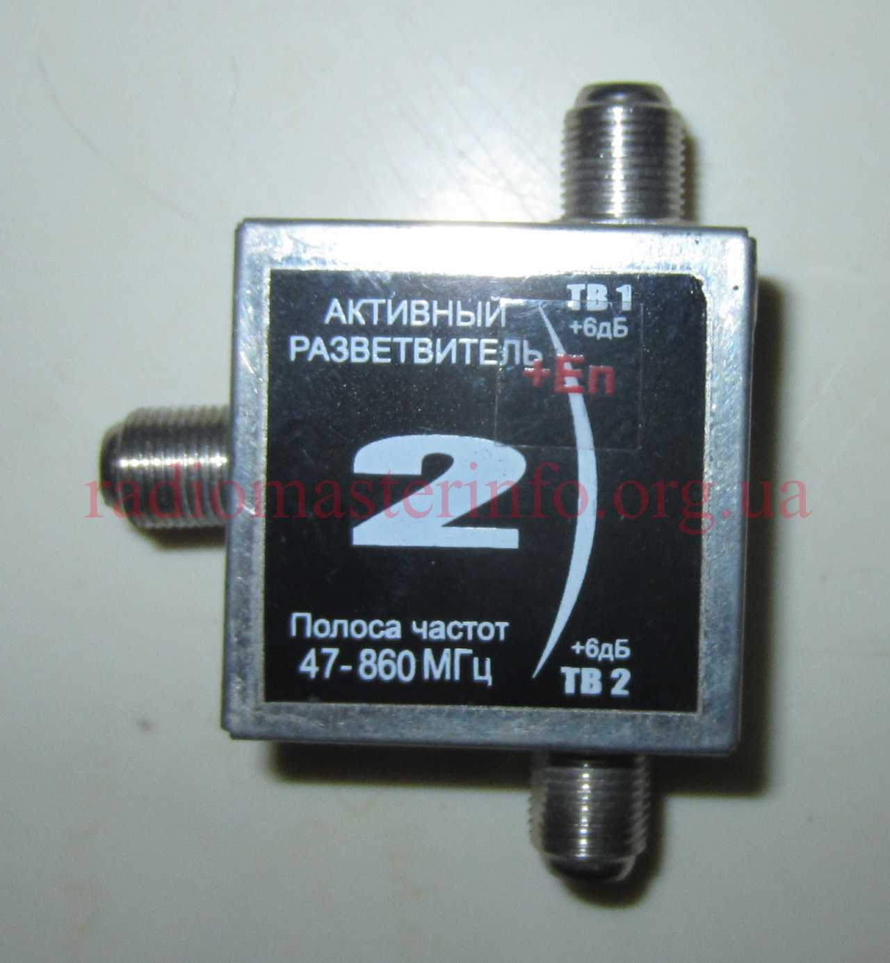 Активный разветвитель с проходным питанием. Используется для питания антенного усилителя, установленного на самой антенне, нельзя применять при разводке кабельного телевидения и сигнала антенны на которой не установлен усилитель.