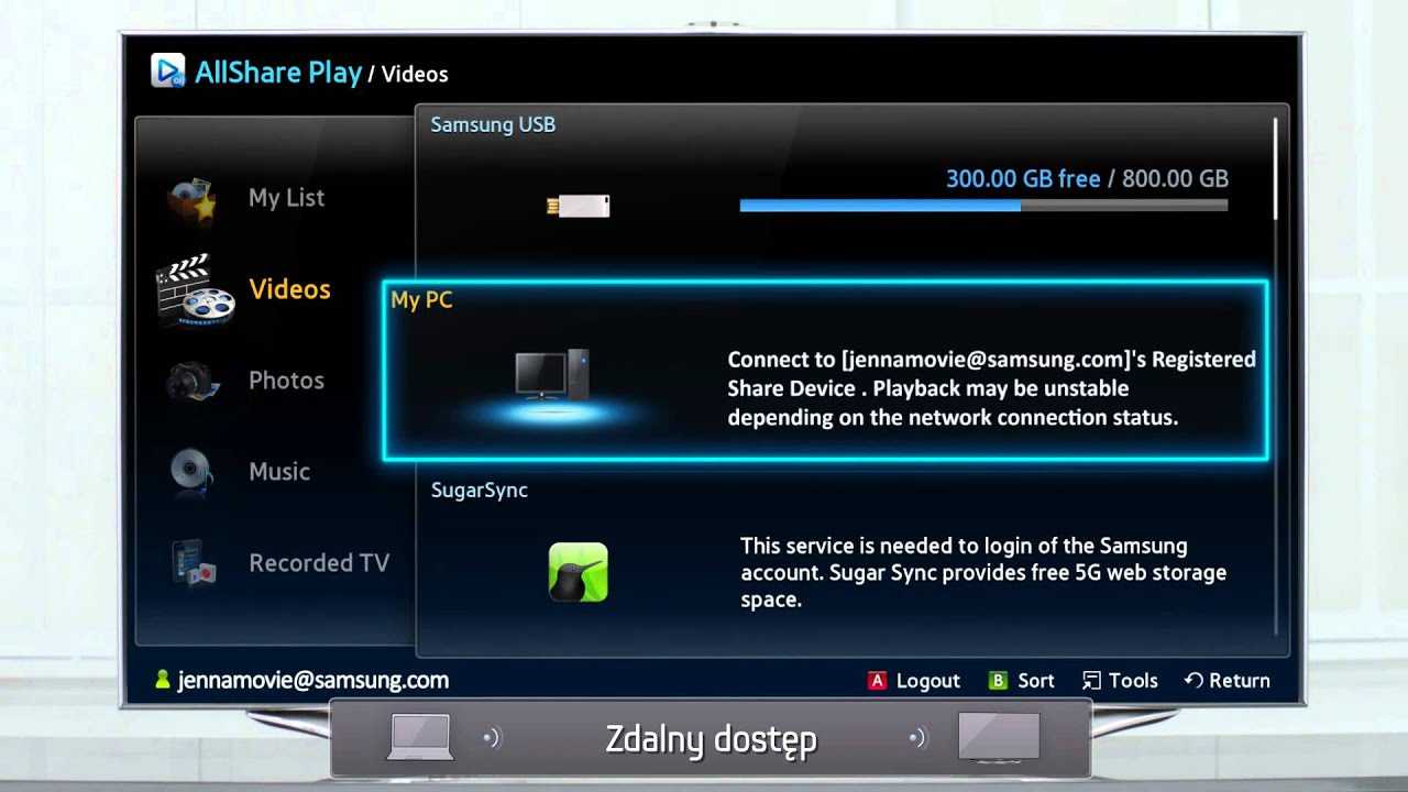 Раздел AllShare на ТВ Samsung