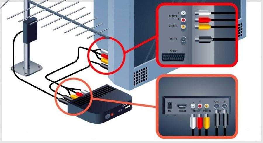 В зависимости от модели телевизора существует несколько основных схем подключения цифрового ресивера: