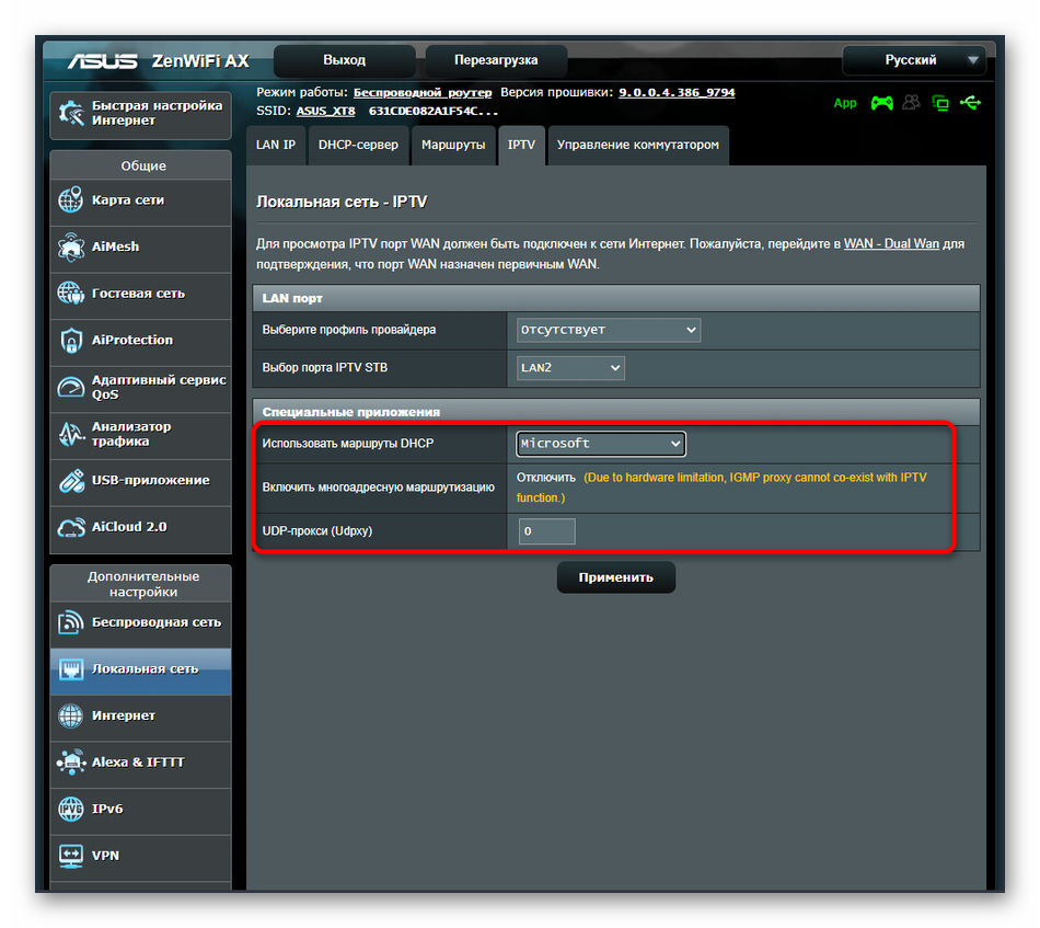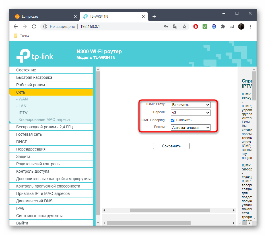 Здесь убедитесь в том, что активирован автоматический режим работы технологии, установлена его последняя версия и включен IGMP Proxy, если этого требует поставщик интернет-услуг.