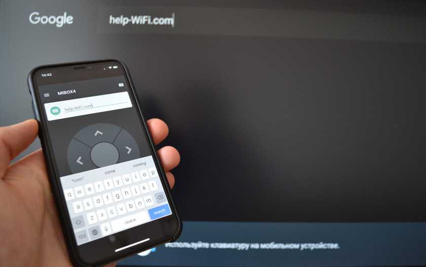 При вводе текста (делать это с помощью пульта ДУ на экранной клавиатуре не очень удобно) система сама предложит использовать подключенный телефон для ввода текста с помощью клавиатуры на мобильном устройстве. Клавиатура на телефоне откроется автоматически. Или откройте ее нажав на отдельную кнопку в приложении. Так же можно скопировать текст или ссылку с телефона и вставить ее на приставке.