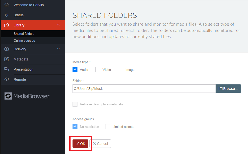Вы можете удалять ненужные папки, просто выделив ее, и нажав специальную кнопку. Можете открывать доступ к новым папкам.