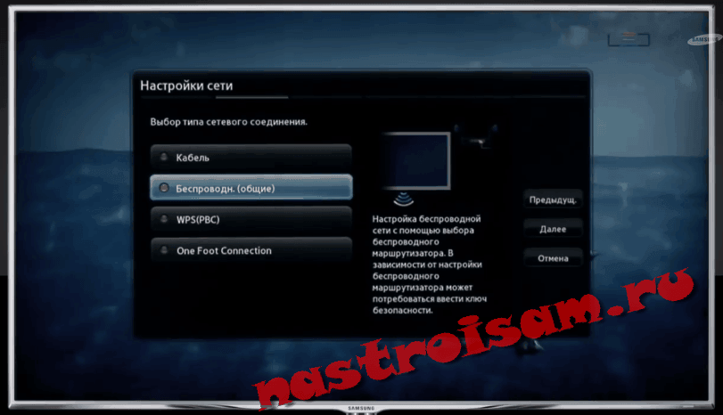 Инструкция подключения интернета на телевизоре Samsung через Wi-Fi